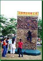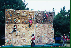 構成和天然岩壁一般凹凸不平的平面攀岩場。
